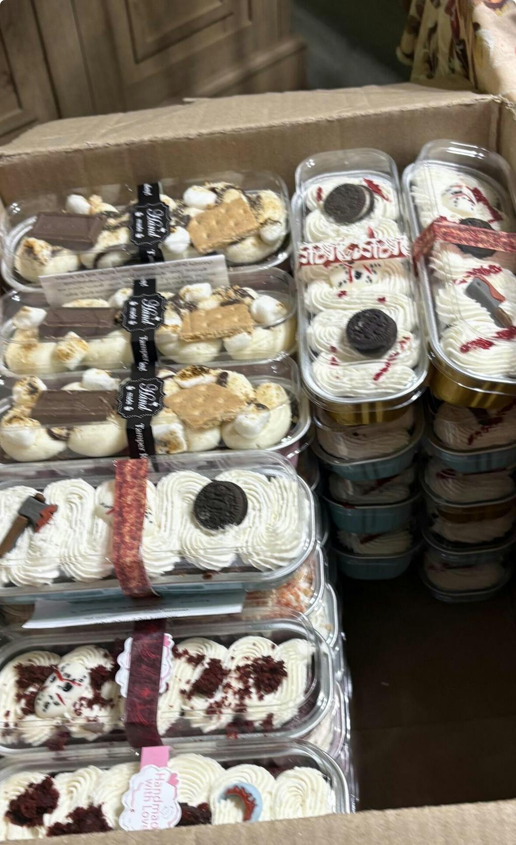 Made from edible gumpaste, this set of 12 toppers contains bloody knives & hatchets. Make a killer impression with your bakes using these edible Bloody Knife Sugar Decorations from PME. These are sure to fright and delight at your Halloween party! Pre-cut and ready to use, simply place onto your cookies, cupcakes, cakes, or desserts. Store away from heat & direct sunlight.